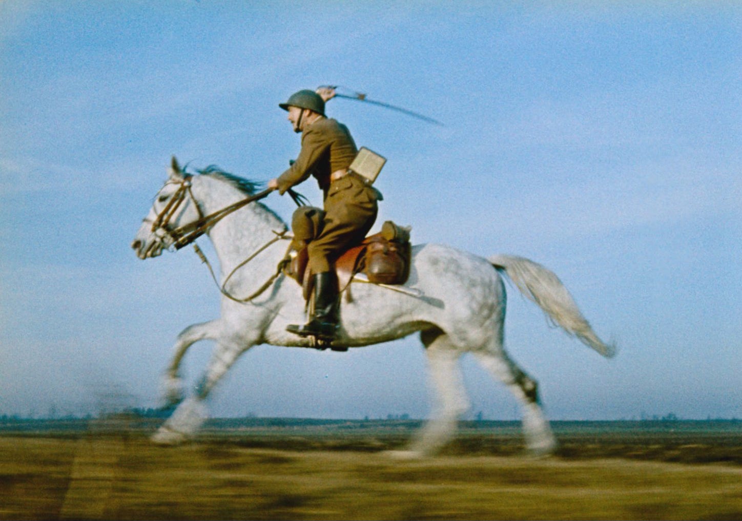 But the problem with the film was that although it was unambiguously celebratory about the history and traditions of the uhlans, it also played into one of the most insidiously pervasive of all WWII myths in a way that many Poles interpreted as a wounding personal insult. The film’s most spectacular set-piece showed uhlans mounting a full-blown cavalry charge against a German invasion that included tanks—something militarily ridiculous, because no mere horse and sabre, however deftly mustered, is going to be a match for a tank, and no sane officer is going to give the order for such an obviously suicidal mission.